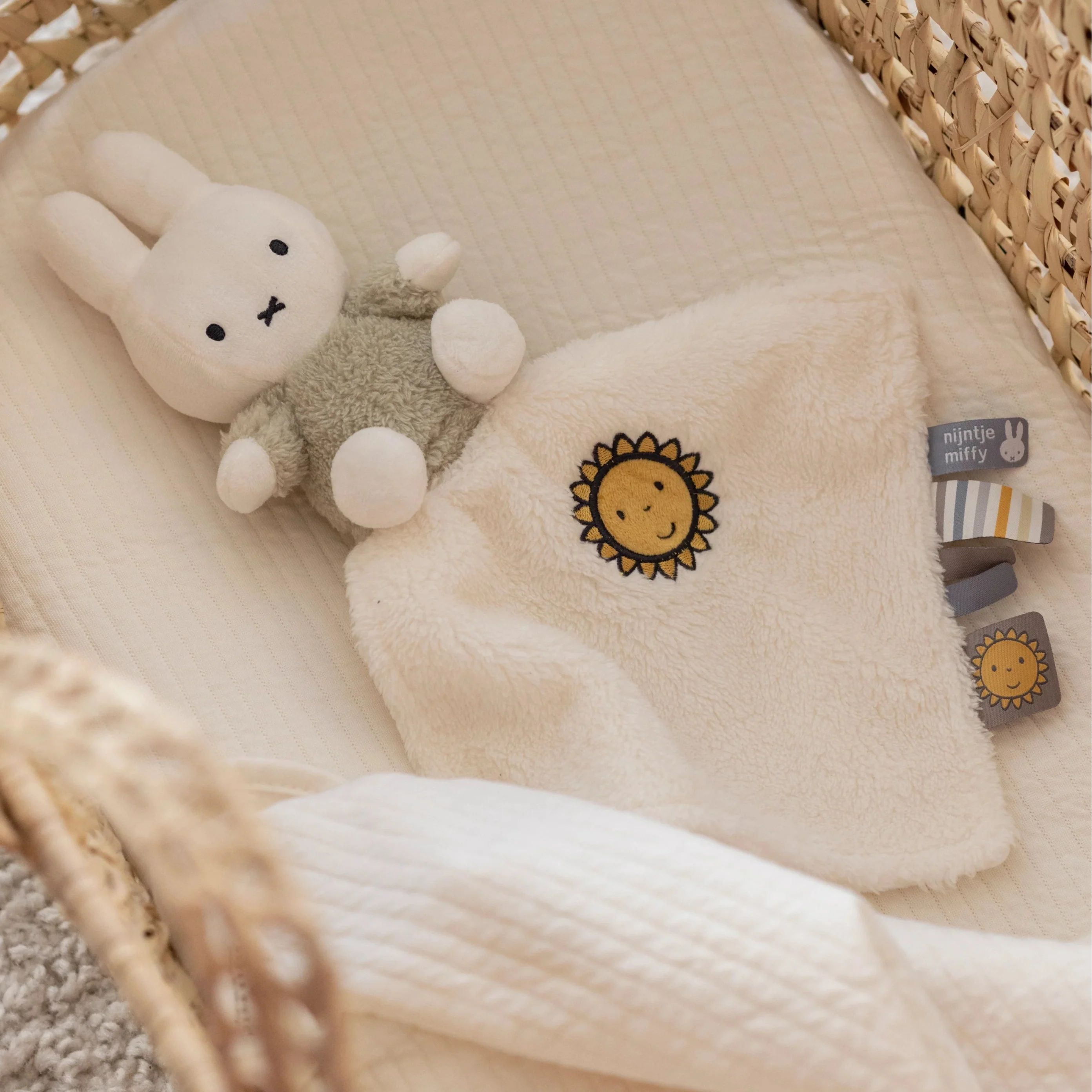 The Miffy Green Cuddle Fluffy Cloth is a plush and velvety cuddle companion that includes tactile labels and a charming image. Designed for maximum softness, this cuddly toy features a luxuriously fluffy fabric.