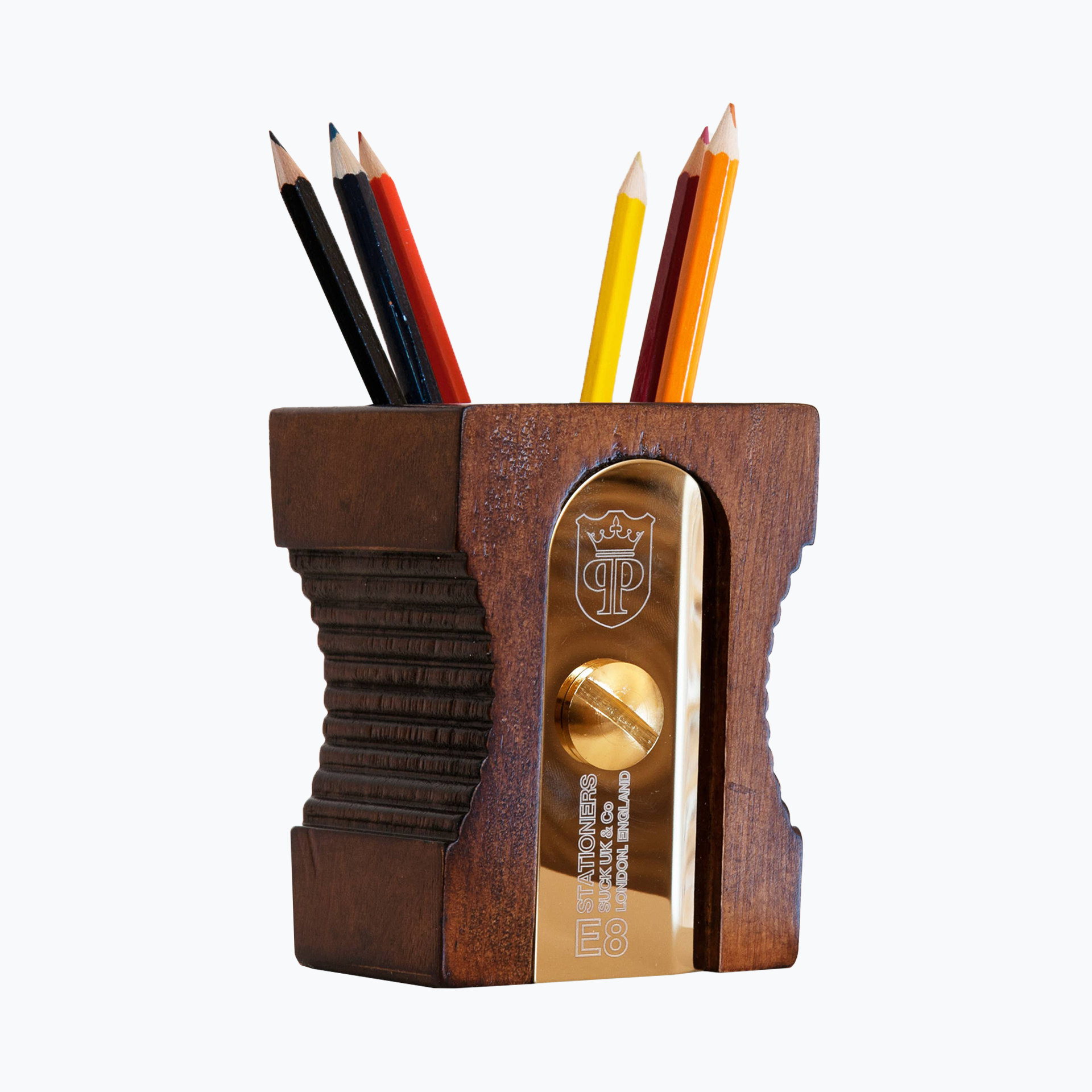 Keep your desk looking sharp… Supersize pencil sharpener pen pot. Hugely iconic and instantly recognisable, a design classic desk-tidy. This simple pencil-pot will keep your pencils, pens and desk top clutter looking sharper than the usual dull desk accessory.